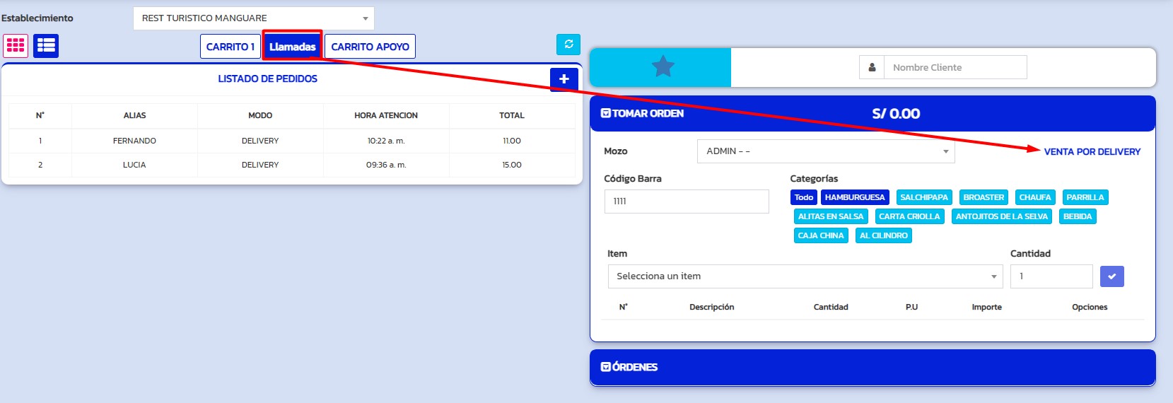 En el presente manual se indican los pasos de cómo registrara la atención de un ítem o todos los ítems una orden por delivery.