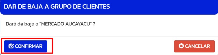 *Nota: En caso ya no se desee dar de baja al Grupo de clientes, dar clic en el botón Cancelar