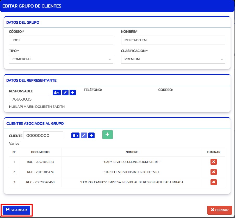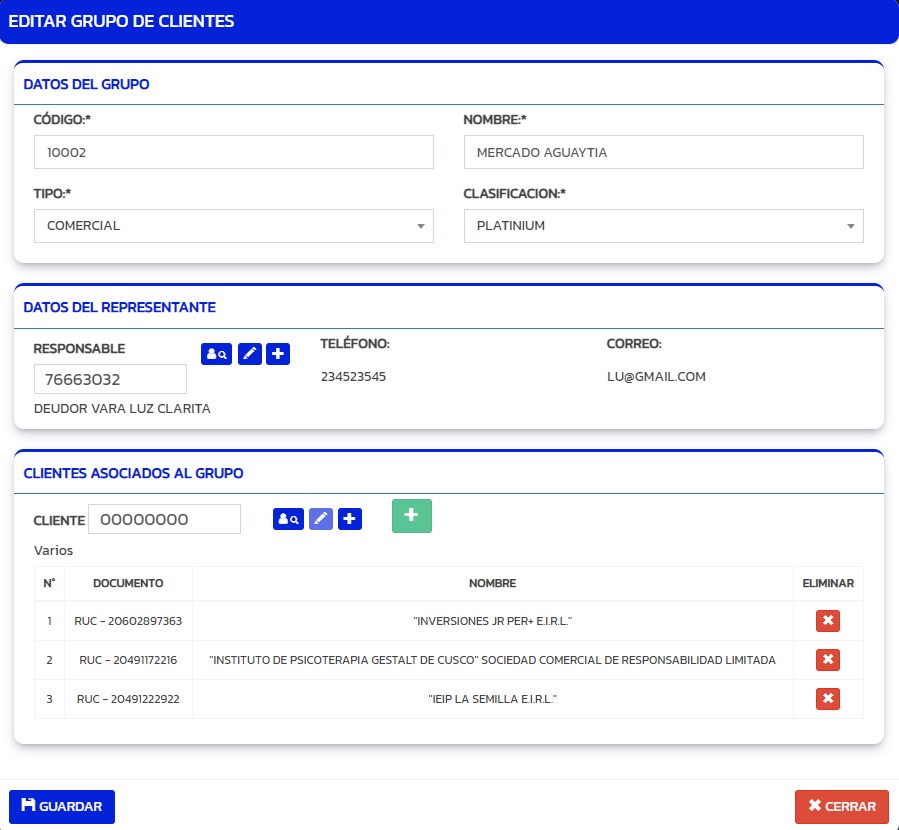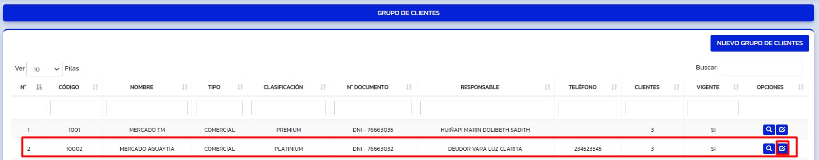 El presente manual detalla el procedimiento para editar datos de un Grupo de clientes registrado previamente.