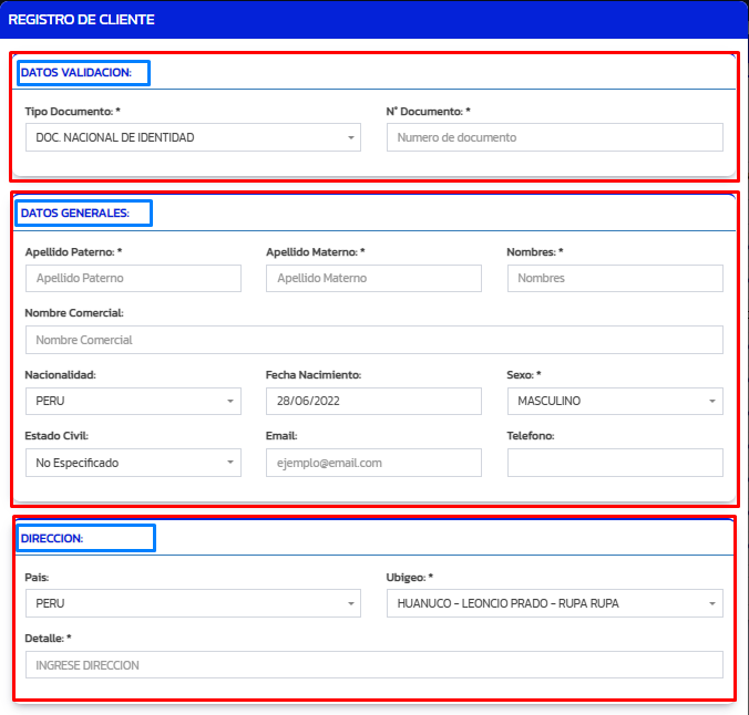 El presente manual detalla el procedimiento para registrar un cliente. El cliente será una persona natural.